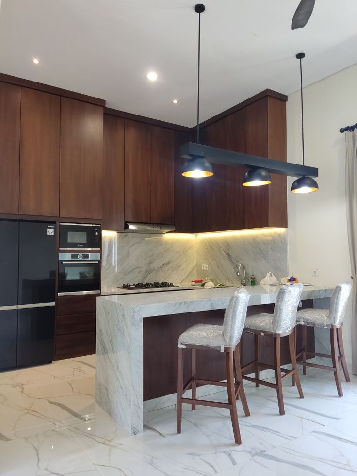 Keunggulan lain dari warna coklat adalah kemampuannya menyesuaikan diri dengan berbagai gaya hunian. Baik pada rumah minimalis modern, hunian klasik, maupun konsep kontemporer tropis, kitchen set warna coklat tetap terasa relevan. Ia tidak memaksakan karakter, tetapi justru menyatu dengan konteks ruang yang ada. Inilah alasan mengapa warna coklat sering muncul dalam proyek-proyek jangka panjang, termasuk hunian keluarga dan properti investasi.